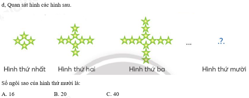d, Hình thứ nhất có 4 ngôi sao (4 x 1 = 4)