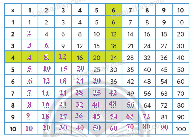 b, Cách sử dụng bảng nhân.