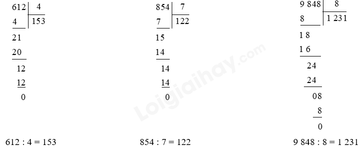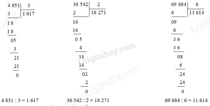 Thực hiện chia lần lượt từ trái qua phải.