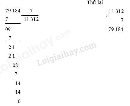 Thực hiện các phép chia sau rồi dùng phép nhân thử lại: