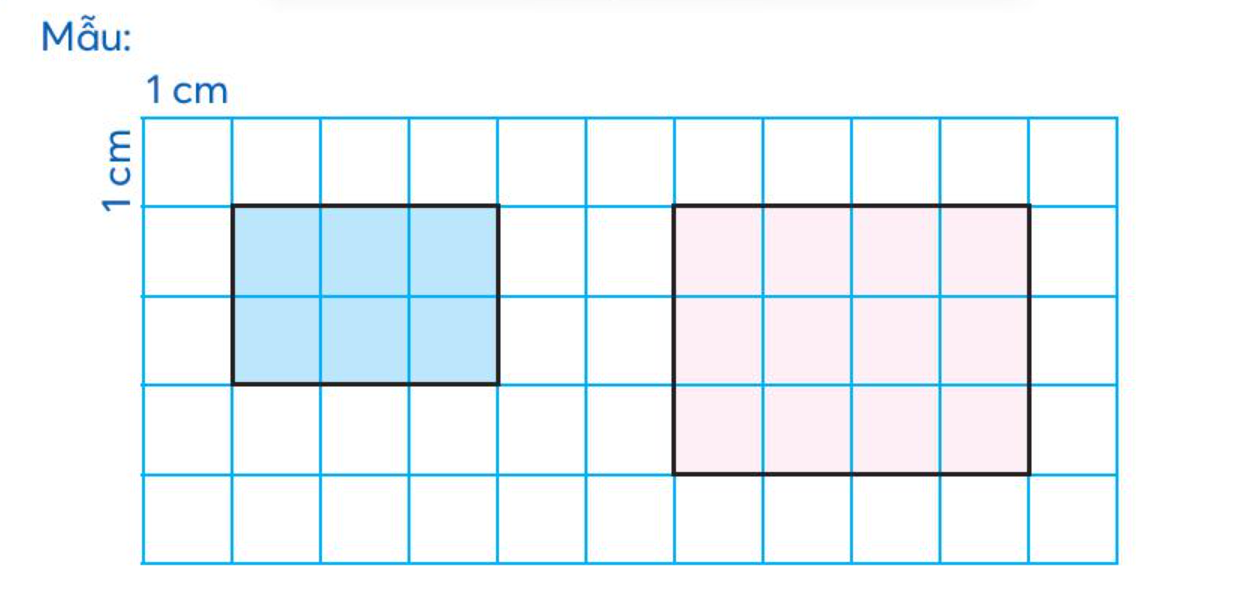 Hình chữ nhật màu xanh có chiều dài là 3 cm, chiều rộng là 2 cm.