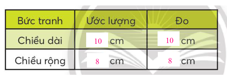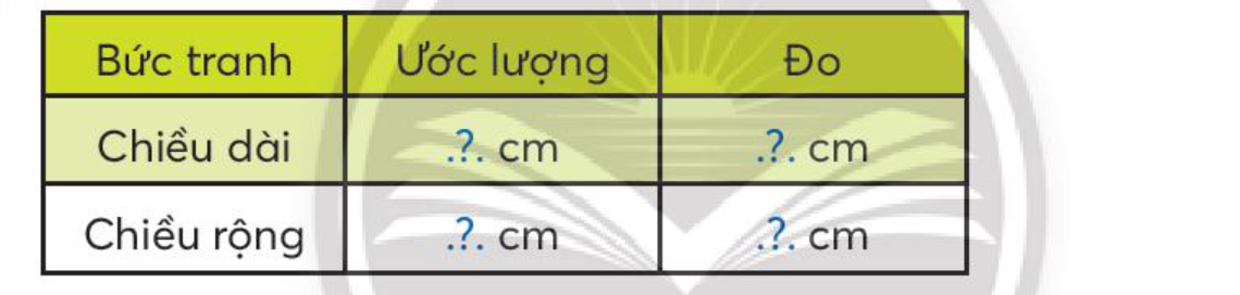 a) Quan sát tranh rồi ước lượng chiều dài, chiều rộng của bức tranh. Sau đó dùng thước kẻ đo chiều dài, chiều rộng của bức tranh.