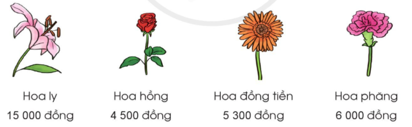 Mua 4 bông hoa ly và 5 bông hoa phăng phải trả số tiền là