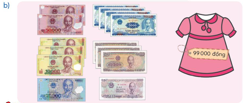 b) Em thấy có 10 tờ 5 000. Có tất cả năm mươi nghìn đồng.