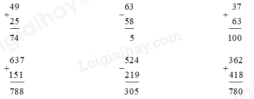 Bước 2: Cộng hoặc trừ các chữ số thẳng cột theo thứ tự từ phải sang trái.