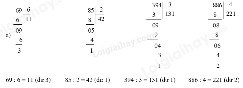 Dựa vào cách đặt tính rồi tính của phép chia rồi trả lời câu hỏi.