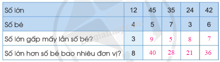 - Muốn biết số lớn gấp mấy lần số bé, ta lấy số lớn chia cho số bé.