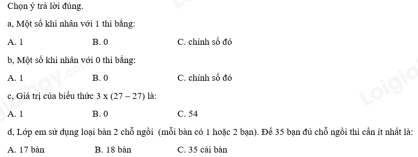 a, Khi nhân một số với 1 thì ta được chính số đó.