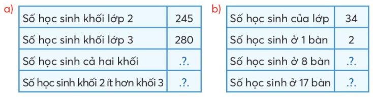 a, Muốn tìm số học sinh cả hai khối ta tính tổng số học sinh ở hai khối đó.