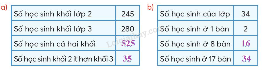 b) Số học sinh ở 8 bàn là 2 x 8 = 16 (học sinh)