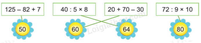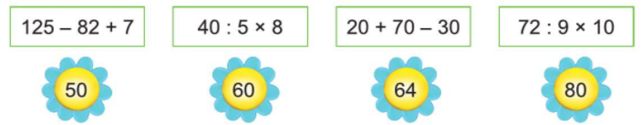 Tính giá trị của mỗi biểu thức sau: Chọn giá trị đúng với mỗi biểu thức sau: Chọn dấu (+, - ) thích hợp: