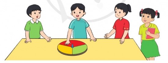 Bình quay đĩa tròn một lần. Khi vòng quay dừng lại thì chiếc kim sẽ chỉ vào một phần đĩa tròn đã tô màu. Sử dụng các từ "chắc chắn". "có thể", "không thể" để mô tả cho khả năng chiếc kim chỉ vào phần màu vàng khi đĩa tròn dừng lại.