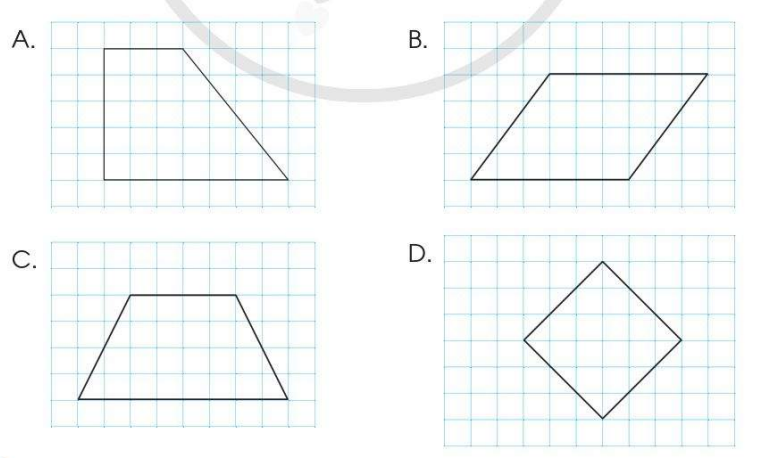h) Hình B có 2 góc nhọn, 2 góc tù và 2 cặp cạnh đối diện song song