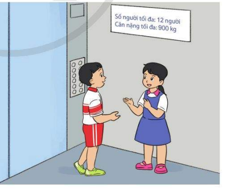 Linh nhìn thấy dòng chữ trong thang máy "Số người tối đa: 12 người. Cân nặng tối đa: 900 kg". Theo em, nếu thang máy đã chở tối đa cân nặng và có 12 người trong thang máy thì cân nặng trung bình của mỗi người là bao nhiêu ki-lô-gam?
