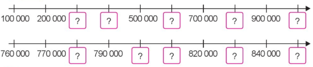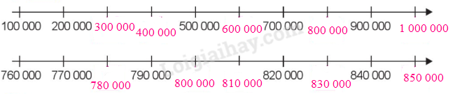 - Tia số thứ nhất: Đếm thêm 100 000 rồi viết số thích hợp vào ô trống.