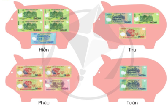 a) Tính tổng số tiền trong mỗi chú lợn