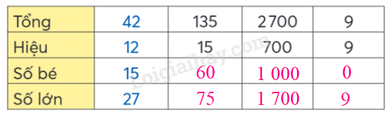 Số bé = Số bé - hiệu