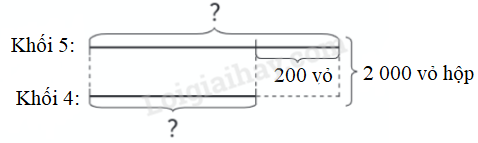 Khối lớp 4 và khối lớp 5 thu gom được tất cả 2 000 vỏ hộp để tái chế. Khối lớp 4 thu gom được ít hơn khối lớp 5 là 200 vỏ hộp. Hỏi mỗi khối lớp thu gom được bao nhiêu vỏ hộp?