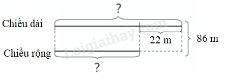 Một khu vườn hình chữ nhật có chu vi 172 m. Chiều dài hơn chiều rộng 22 m. Tính chiều dài và chiều rộng của khu vườn đó.