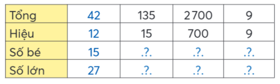 - Tổng hai số là 2 700 và hiệu hai số là 700: