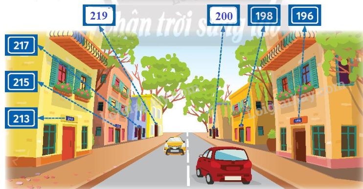 Người ta đánh số nhà ở đường phố như sau: một bên là số chẵn, một bên là số lẻ. Từ đầu đường đến cuối đường, các số nhà được sắp xếp theo thứ tự từ bé đến lớn.