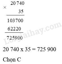 Giá trị của biểu thức 20 740 x 35 là: