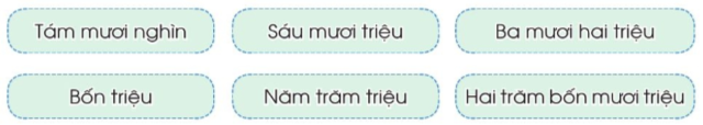 a) 1 triệu, 2 triệu, 3 triệu, 4 triệu, 5 triệu, 6 triệu, 7 triệu, 8 triệu, 9 triệu, 10 triệu