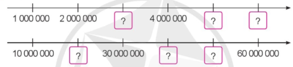 - Tia số thứ hai: Đếm thêm 10 000 000 rồi viết số còn thiếu vào ô trống.