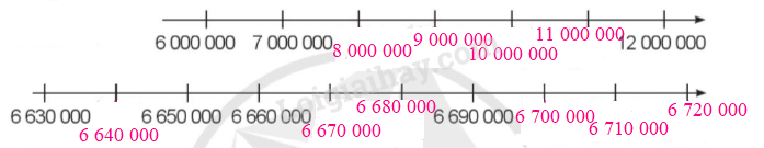 - Tia số thứ nhất: Đếm thêm 1 000 000 rồi viết số thích hợp vào ô trống.