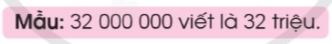 c) Sử dụng đơn vị là triệu viết lại mỗi số sau (theo mẫu):