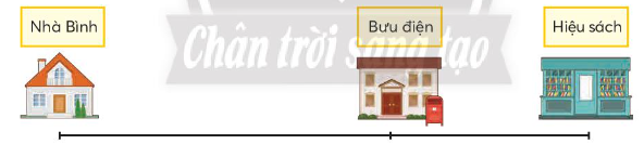 Để đi từ nhà đến hiệu sách, Bình phải đi qua bưu điện. Quãng đường từ nhà Bình đến bưu điện dài 500 m và dài hơn quãng đường từ bưu điện đến hiệu sách là 150 m.