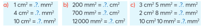 - Áp dụng cách đổi: 1 cm2 = 100 mm2