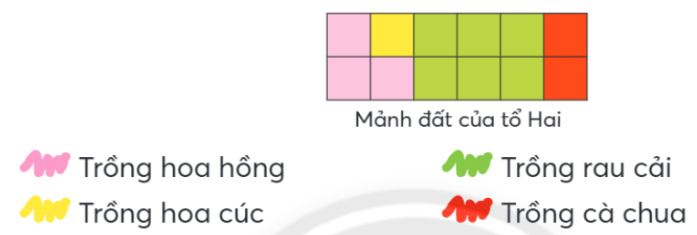 Tổ Hai được phân công trồng cây trên một mảnh đất. Các bạn chia mảnh đất thành 12 phần bằng nhau và trồng cây như sau: