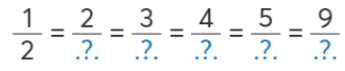 $\frac{1}{2} = \frac{2}{4} = \frac{3}{6} = \frac{4}{8} = \frac{5}{{10}} = \frac{9}{{18}}$