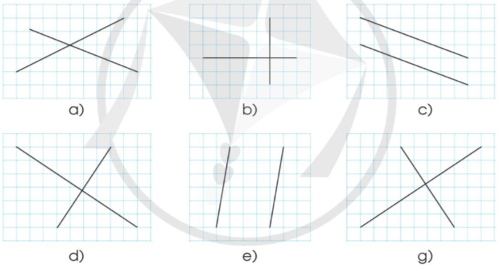 - Các cặp đường thẳng vuông góc với nhau là: hình b, hình d, hình g