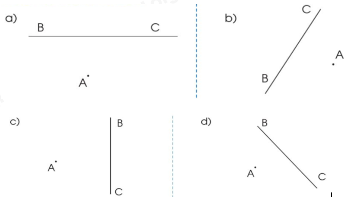 Vẽ đường thẳng đi qua điểm A và vuông góc với đường thẳng BC trong mỗi trường hợp sau: