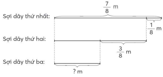 - Tìm độ dài sợi dây thứ ba = Độ dài sợi dây thứ hai - $\frac{3}{8}$