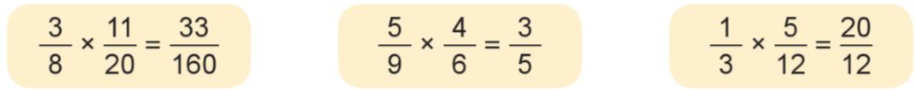Muốn nhân hai phân số, ta lấy tử số nhân với tử số, mẫu số nhân với mẫu số.