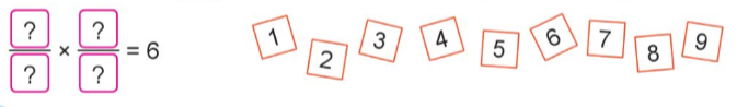 $\frac{3}{2} \times \frac{4}{1} = 6$ ; $\frac{9}{1} \times \frac{2}{3} = 6$