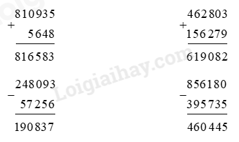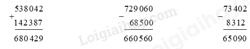 Thực hiện tương tự với các phép tính còn lại.