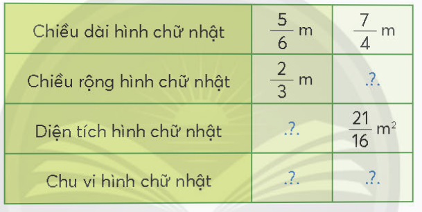 Chiều rộng hình chữ nhật là: $\frac{{21}}{{16}}:\frac{7}{4} = \frac{3}{4}$ (m)