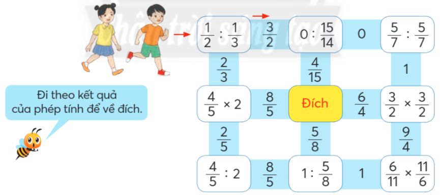 Mẫu: $\frac{3}{5}:\frac{2}{3} = \frac{3}{5} \times \frac{3}{2}$
