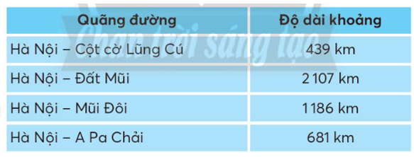 Vậy quãng đường từ Hà Nội – Cột cờ Lũng Cũ ngắn nhất, quãng đường từ Hà Nội – Đất Mũi dài nhất.