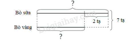 Cả hai con bò sữa và bò vàng cân nặng 7 tạ. Con bò sữa cân nặng hơn con bò vàng là 2 tạ. Hỏi mỗi con bò cân nặng bao nhiêu tạ?