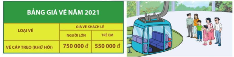 Nhà bạn Trang có 6 người bao gồm 4 người lớn và 2 trẻ em. Em hãy giúp Trang tính xem mua vé cáp treo khứ hồi (đi và về) cho cả nhà cần trả bao nhiêu tiền.