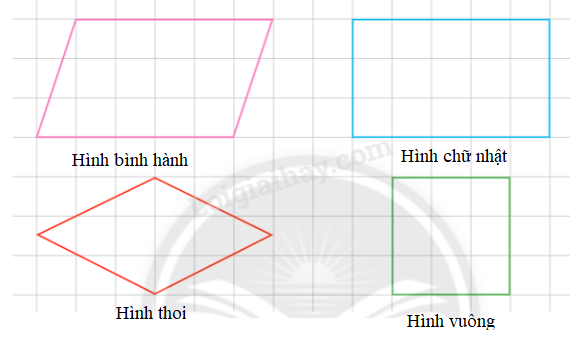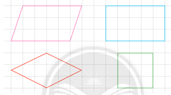 – Hình có hai cặp cạnh đối diện song song với nhau là hình bình hành, hình chữ nhật, hình thoi, hình vuông.