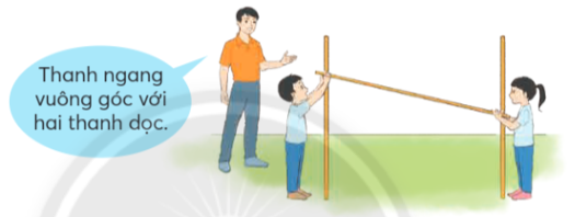 Quan sát hình vẽ để xác định xem thanh ngang đã vuông góc với hai thanh dọc chưa rồi kết luận