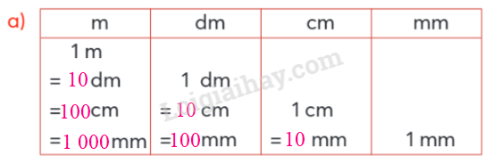 $\frac{1}{{10}}$ m = 1 dm , $\frac{1}{{10}}$ cm = 1 mm