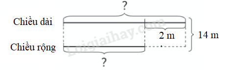 Nền một phòng học hình chữ nhật có nửa chu vi là 14 m, chiều dài hơn chiều rộng 2 m. Tính diện tích phòng học đó.