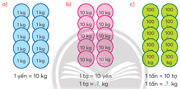 Tìm hiểu quan hệ giữa yến, tạ, tấn và ki-lô-gam.